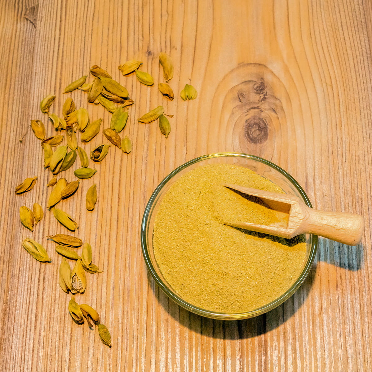 Kardamon mielony to jedna z najstarszych i najdroższych przypraw świata, stosowana tradycyjnie w kuchni orientalnej. Cechą kardamonu mielonego jest intensywny, korzenny zapach z nutą kamfory. Kardamon mielony idealnie nadaje się do potraw słodkich, deserów, owoców, oraz dań wytrawnych, mięsa (kaczka, kurczak, żeberka), kiełbas, pasztetów, bigosu. Pasuje też do dań typu curry i do gulaszu. Przyprawa ta jest niezastąpiona do zupy krem z dyni. Kardamon mielony doskonale sprawdza się dosypany do kawy (podkreśla jej aromat) oraz jako dodatek do alkoholi.