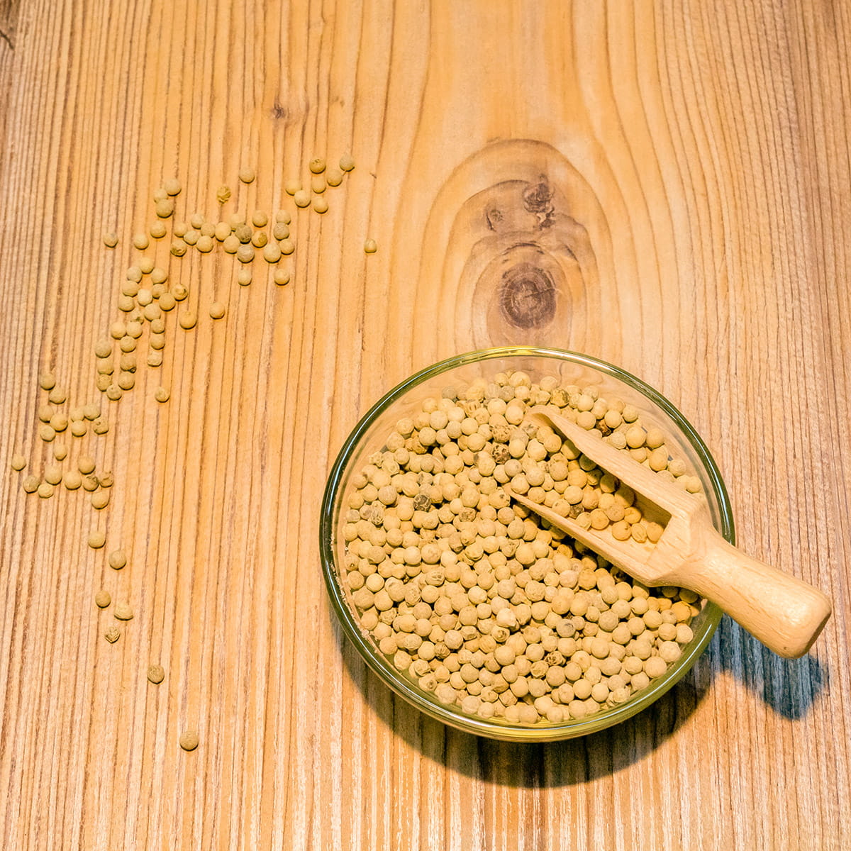Pieprz biały jak i czarny, pochodzą dokładnie z tej samej rośliny, pochodzącej z rodziny pieprzowatych. Pieprz biały w odróżnieniu od czarnego jednak pochodzi z owoców całkowicie dojrzałych. Smak pieprzu białego jest delikatniejszy. Ma zastosowanie do białych mięs, drobiu, ryb, jajek, pasztetów i serów, a także do sałatek, zup, białych sosów, gulaszów z podrobów oraz dań warzywnych.