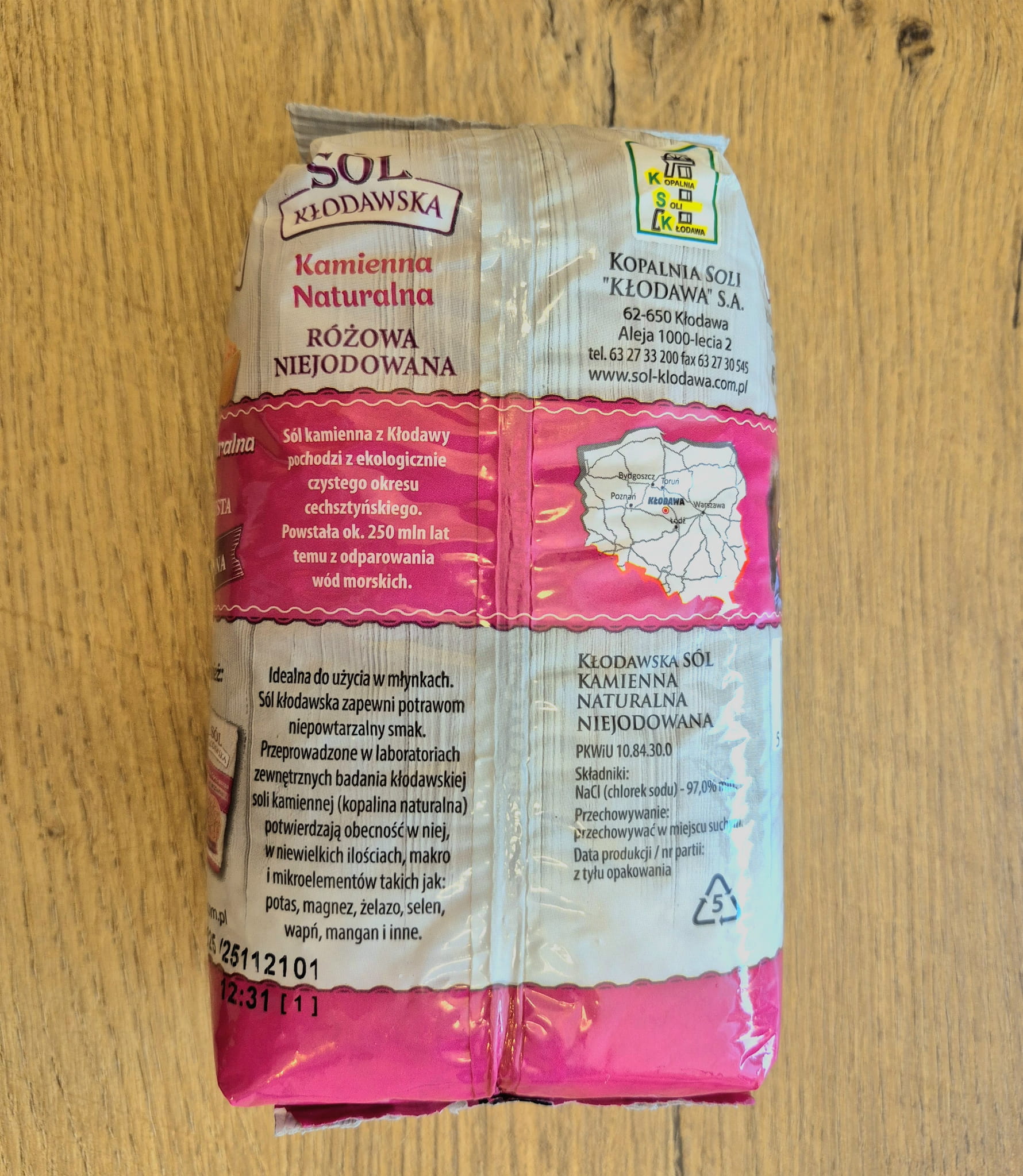 Sól kamienna kłodawska niejodowana różowa gruboziarnista to klasyczna przyprawa poprawiająca smak potraw. Jest idealna do użycia w młynkach. Sól kamienna z Kłodawy powstała ok. 250 mln lat temu z odparowania wód morskich. Teraz wydobywana jest od lat 50. XX wieku przy użyciu tradycyjnej metody górniczej.